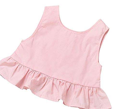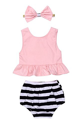 Younger Tree Baby Girl Summer Clothes Pink Blouse Top + Striped Shorts + Headband 3Pcs Outfit Set (Pink 12-18 Months) [並行輸入品]