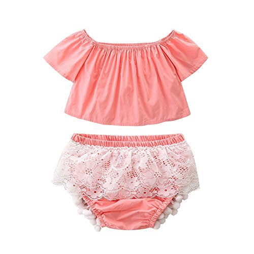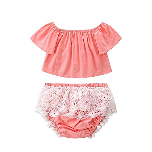 Scfcloth Newborn Baby Girl Toddler Off Shoulder Top + Tassel Lace Bottom Clothing Set Outfits (18-24 Months) [並行輸入品]