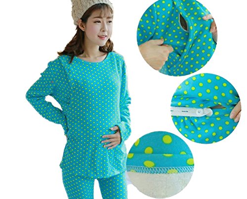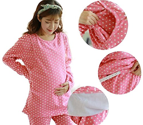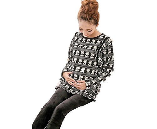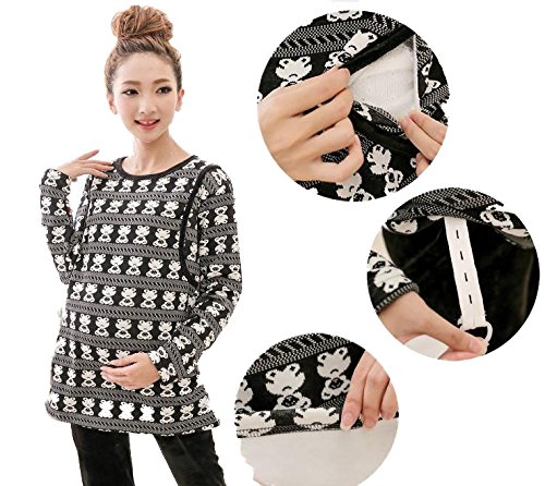 スタイル・ワン(1/style) 秋冬裏起毛 マタニティ コットン授乳口付きルームウェアセットアップ 産前産後セットアプ 全6色(ネイビー、グレー、ピンク、ブルー、グリーン、白黒)(M、L[,XL、XXL) (L, 白黒(模様))