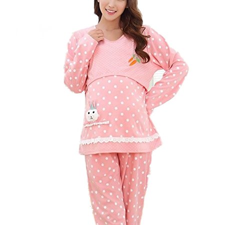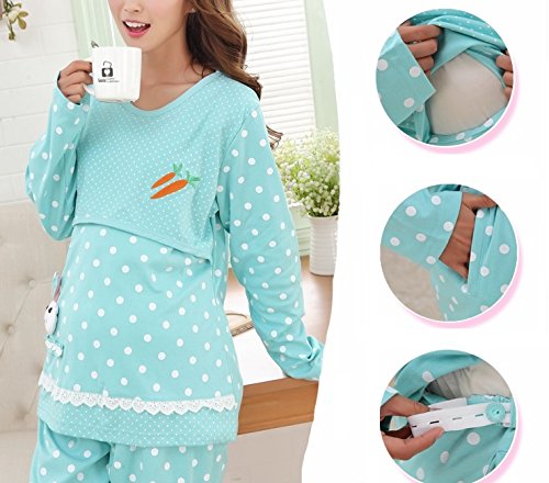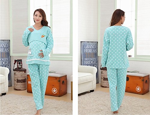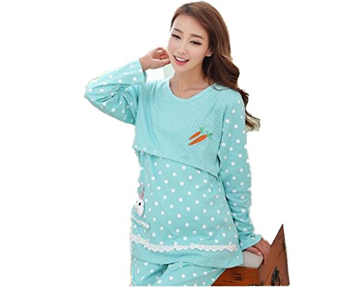 スタイル・ワン(1/style) マタニティ 肌にやさしいコットン! 授乳口付き長袖ルームウェアセットアップ 産前産後セットアプ 全2色(ピンク、ブルー)(L,XL、XXL) (L, ブルー)