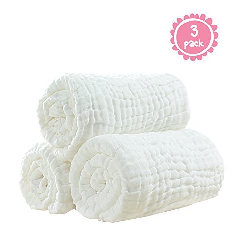 100% Medical Grade Natural Antibacterial,super Water Absorbent,soft and Comfortable,suitable for Baby's Delicate Skin,cotton Gauze Warm Baby Bath Towels Also for Baby Blanket -3 Pcs by LOVE MY