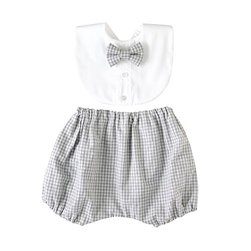 10mois 蝶ネクタイつきスタイ&ブルマ シャツ グレーチェック 3067