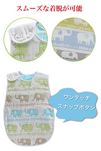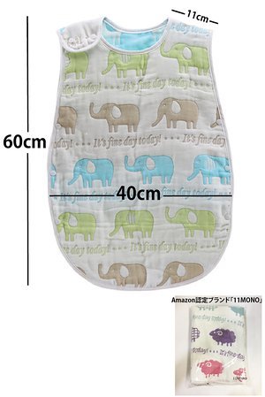 11MONO 6重より柔らか 8重ガーゼ スリーパー 肌触り抜群 ベビーサイズ60㎝(新生児~3歳頃) (象さん)