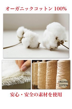 肌に触れる部分はオーガニックコットンなので、お肌の弱いお子様も安心してご使用いただけます。 肌に触れる側面は8層の異なった密度のガーゼをミルフィーユ状に重ねることで、より多くの空気が取り込まれ、通気性や保温性に大変優れており、軽さとふっくらとした手触りが得られます。