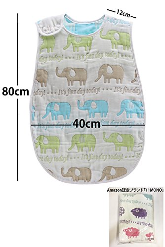 11MONO 6重より柔らか 8重ガーゼ スリーパー 肌触り抜群 キッズサイズ80㎝(2歳~7歳頃) (象さん)