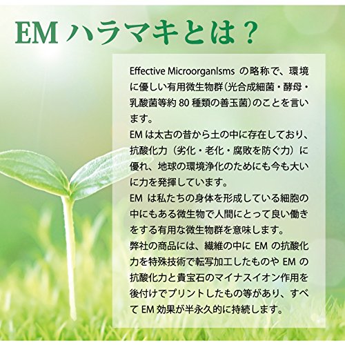 弊社の商品には、繊維の中にEMの抗酸化力を特殊技術で転写加工したものやEMの抗酸化力と貴宝石のマイナスイオン作用を後付けでプリントしたもの等があり、すべてEM効果が半永久的に持続します。