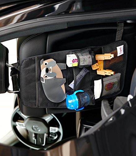 ・哺乳瓶、おしりふき、おもちゃ、絵本など 子供たちとのお出かけの必需品を、車の床に置かず、整理整頓し、手の届くところに置いておくことができるバックシートオーガナイザー。