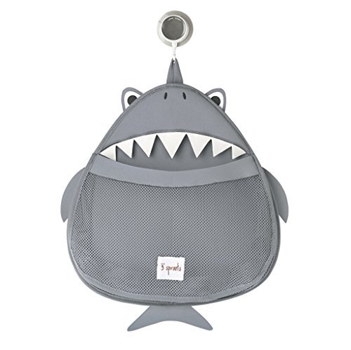 3 Sprouts Bath Toy Storage Bag, Shark, Grey [並行輸入品]