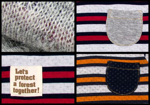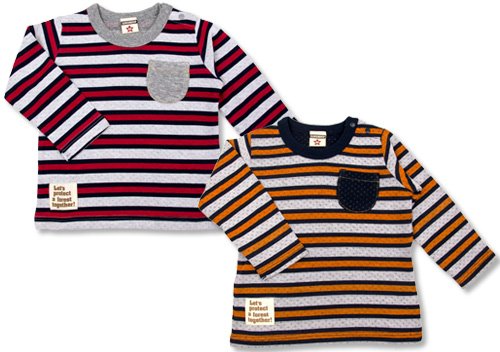 商品説明: サンデュードロップの長そでTシャツです 薄手の天竺を二重織にし、ところどころを接結した素材でやわらかい肌触りの接結天竺使用。 80.90.95は左肩のスナップボタンで着脱ラクラク (※100サイズにはスナップボタンはついていません) 全体ボーダー柄で右側のお裾には英語が入った布タグ付 左胸のポッケも見逃せない お色はグレーポケットとネイビーポケットの2色展開です サイズ:80cm/90cm/95cm/100cmカラー:グレーポケット/ネイビーポケット素材:本体 綿50% ポリエステル50%リブ部分 綿95% ポリウレタン5%原産国:中国