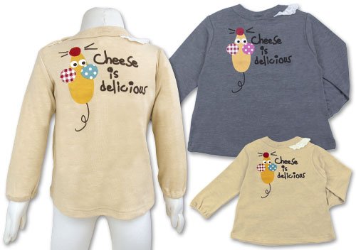 (サンデュードロップ)SUN DEW DROP 2015 ネズミとチーズ 胸ポケット付き Aライン 長そでTシャツ 95cm 杢グレー