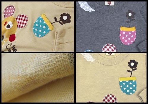 商品説明: サンデュードロップのチーズを持ったネズミさんプリントが可愛いAライン長そでTシャツです。 保湿性・伸縮性に優れたスムス素材使用。 左肩のスナップで着脱ラクラク 左胸には小さなミニポケット付き そこからひょっこり顔を出すお花プリントにも注目 バックプリントのネズミさんもかわいい お色は杢グレーとベージュの2色展開です。 サイズ: 80cm/90cm/95cm カラー: 杢グレー/ベージュ 素材: 本体 ポリエステル65% 綿35% リブ部分 ポリエステル63% 綿32% ポリウレタン5% 原産国: 中国