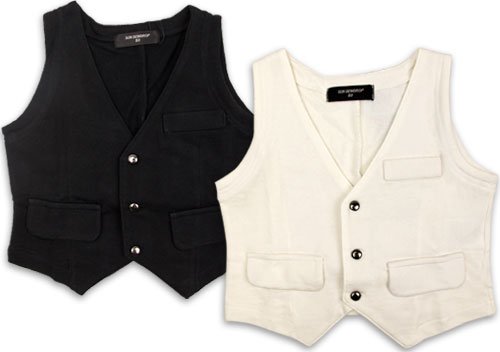 商品説明: サンデュードロップのミニ裏毛モノトーンベストです 本体はタオル地のようにループ状になっているミニ裏毛使用 全体無地でシンプルなカッコイイベスト 大活躍間違いなしの全体無地で色んなお洋服と相性ばっちり 左胸と両裾の飾りポケットにも注目 お色はブラックとホワイトの2色展開です サイズ:80cm/90cm/95cmカラー:ブラック/ホワイト 素材:綿100% 原産国:中国