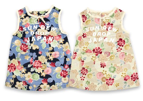 (サンデュードロップ)SUN DEW DROP 和柄 牡丹総柄 レース付 サンドレス 95cm ネイビー