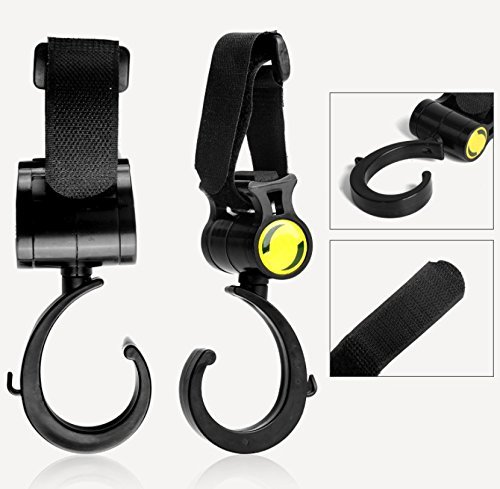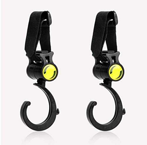 360MALL ベビーカーフック マルチ フック マジックテープ式 滑り止め 360度回転 両手を解放 多功能荷物フック 自転車のハンドルやスーツケースや車にも使える (2個入り)