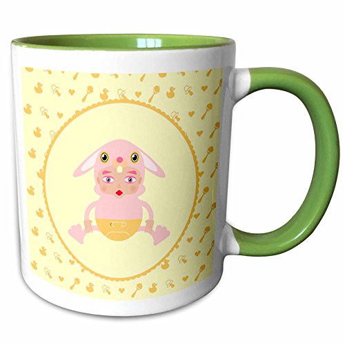 3drose Belinha Fernandes – Babies and Sweetバグ – かわいい赤ちゃんの図Dressed in aウサギコスチューム、with Rubber Duck、おしゃぶりand Rattle – マグカップ 11-oz Two-Tone Green Mug mug_160608_7