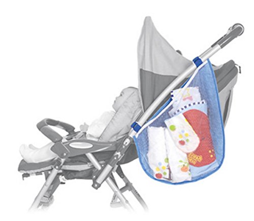 ベビーカー 収納 サイド ネット ケース バッグ 小物入れ 取り付け簡単 (ブルー)