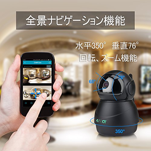 - 【水平350°垂直76°の回転機能】1920*1080P解像度のカメラは高画質映像を実現できます。回転機能搭載で水平350°、垂直76°までレンズの向きを調整でき、死角のない程広い撮影範囲になります。アプリでその向きをリモートコントロールことができます。