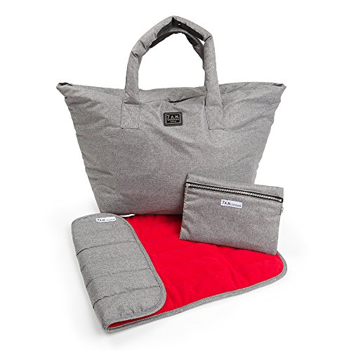 - 7 A.M. ENFANT Roma Diaper Bag, Heather Grey/Red, Large