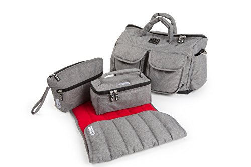 - 7 A.M. ENFANT Voyage Diaper Bag, Heather Grey/Red, Large