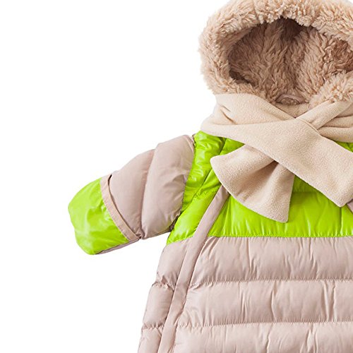 - 7AM Enfant Doudoune One piece Infant Snowsuit Bunting, Beige/Neon Lime, Small