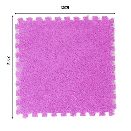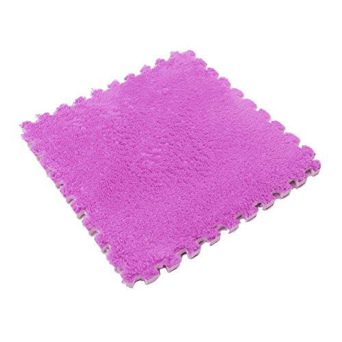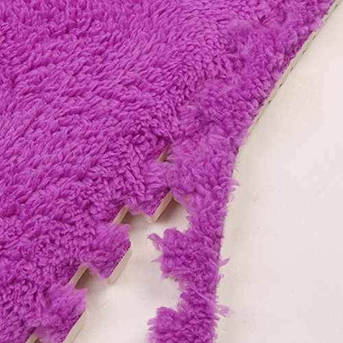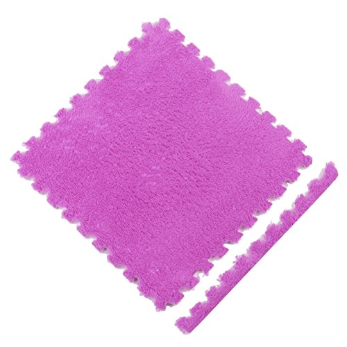 Ailierジョイントマット 絨毛付き EVAマット ノンホルムアルデヒド フロア プレイ クッション マット サイドパーツ付き 大判 30×30cm 断熱 快適 子供部屋 (16枚セット, パープル)