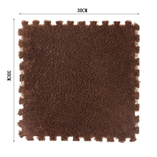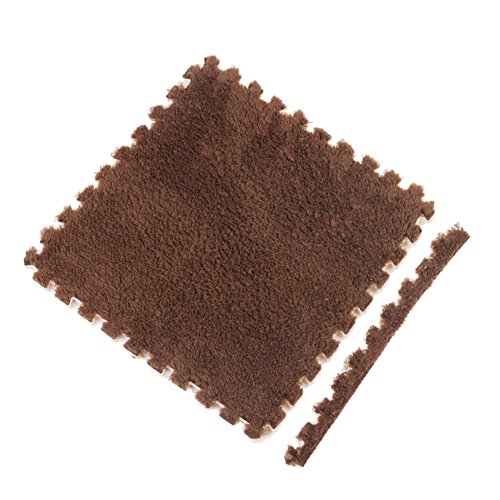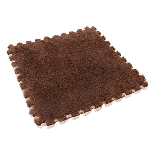 Ailierジョイントマット 絨毛付き EVAマット ノンホルムアルデヒド フロア プレイ クッション マット サイドパーツ付き 大判 30×30cm 断熱 快適 子供部屋 (16枚セット, コーヒー色)