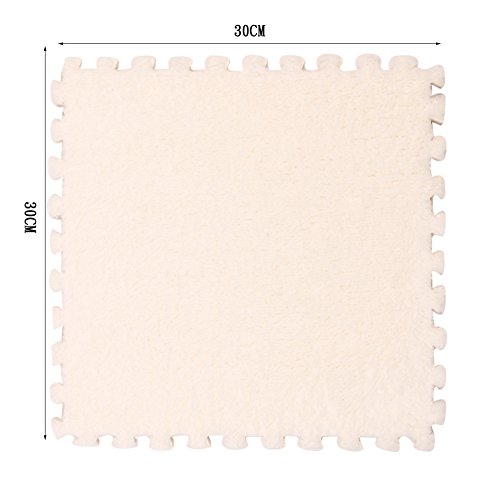 Ailierジョイントマット 絨毛付き EVAマット ノンホルムアルデヒド フロア プレイ クッション マット サイドパーツ付き 大判 30×30cm 断熱 快適 子供部屋 (16枚セット, ホワイト)