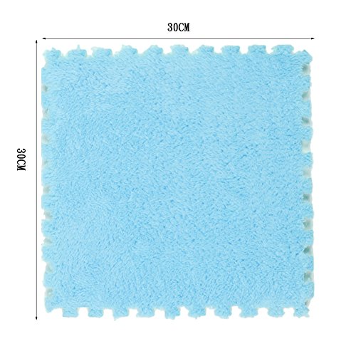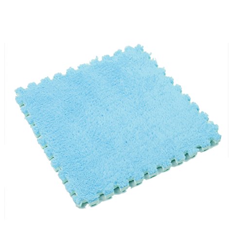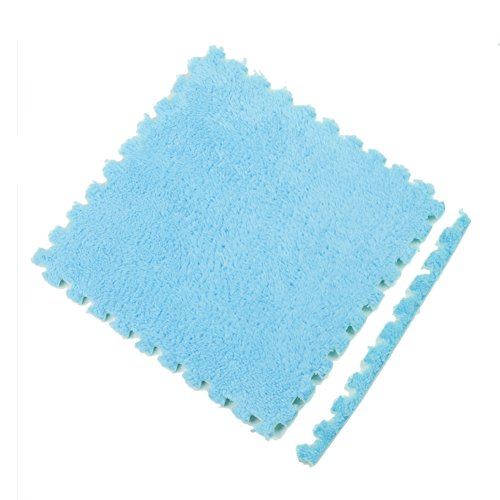 Ailierジョイントマット 絨毛付き EVAマット ノンホルムアルデヒド フロア プレイ クッション マット サイドパーツ付き 大判 30×30cm 断熱 快適 子供部屋 (8枚セット, スカイブルー)