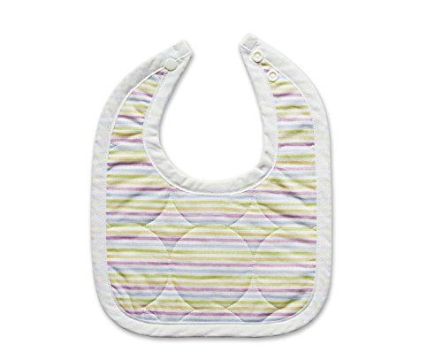よだれも食べこぼしもしっかりキャッチ!2段ホック付きでサイズ調節できます。裏面も綿100%(ガーゼ)なので、素肌にあたる部分も安心。丸とダイヤ柄が印象的なキルティング。端はバイアステープで処理されているので、縫い代がゴロつく事はありません。