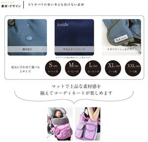 - 対象月齢:S:0ヶ月-6ヶ月、M:6-12ヶ月、L:12-24、XL:2-4T、XXL:5-6T