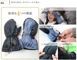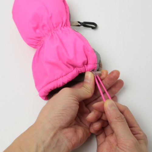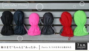 7A.M.ENFANT Long Cuffed Mittens の取付は簡単。そのままミトンの中に手を入れれば装着完了です。広さが調節できる袖口と、リスト部分にあるギャザーのおかげで、ベビーの手にしっかりフィット。ミトンの脱落と冷たい空気の侵入を防ぎます。またフックも付いているので、どこにでも取付けることができ大変便利です。