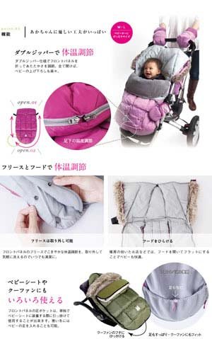 - 素材:表地/ナイロン100%、裏地/コットン100%、中綿/ポリエステル100%、フリースブランケット/ポリエステル100%