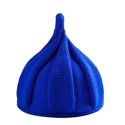 とんがり ニット帽 キッズ ねじり帽 秋冬 選べる19色 (青)