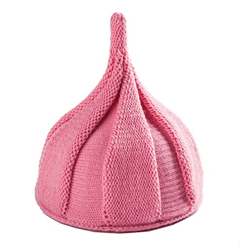 とんがり ニット帽 キッズ ねじり帽 秋冬 選べる19色 (ピンク)