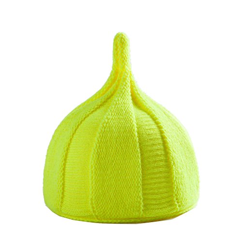とんがり ニット帽 キッズ ねじり帽 秋冬 選べる19色 (蛍光イエロー)