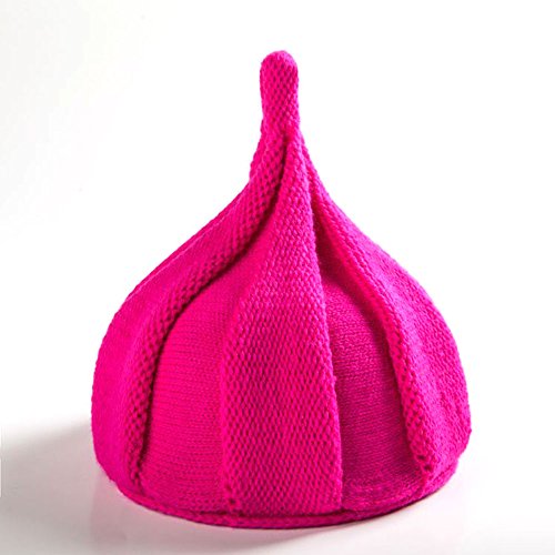 とんがり ニット帽 キッズ ねじり帽 秋冬 選べる19色 (ローズ(裏起毛))