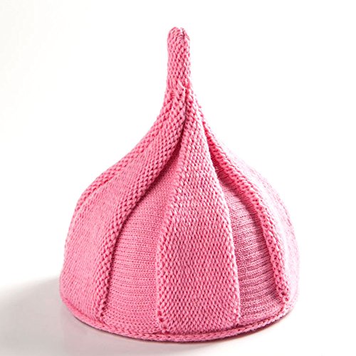 とんがり ニット帽 キッズ ねじり帽 秋冬 選べる19色 (ピンク(裏起毛))