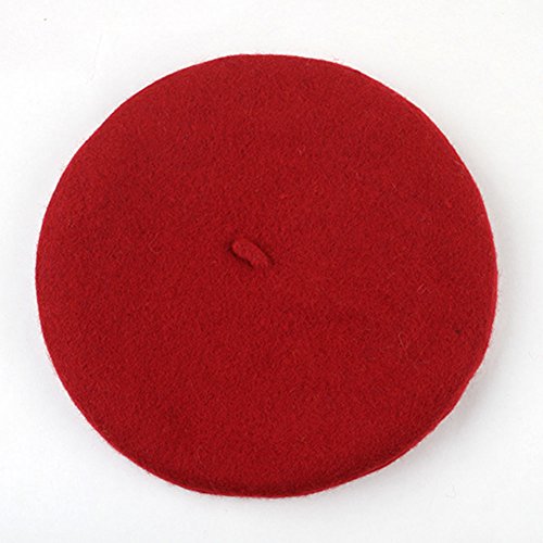キッズ ベレー帽 100%ウール 選べる40色 (レッド(Wine))