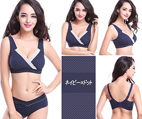 (セブンシティー) 7city マタニティ ブラジャー 授乳用 ノンワイヤー ドット (L/36, ネイビー&ドット)