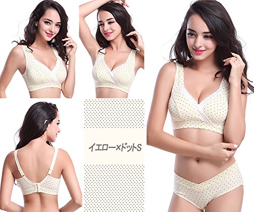 (セブンシティー) 7city マタニティ ブラジャー 授乳用 ノンワイヤー ドット (XL/38, イエロー&ドットS)