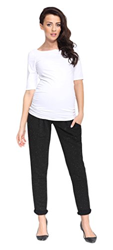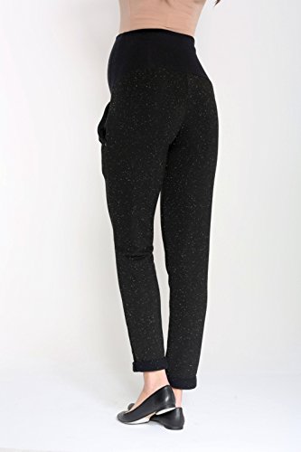 9fashion マタニティパンツ BOW II ロールアップスウェットマタニティパンツ サイズL ブラック