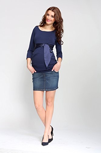 9fashion マタニティトップ SIERRA 3/4スリーブ サテンリボン マタニティトップ サイズL ダークブルー