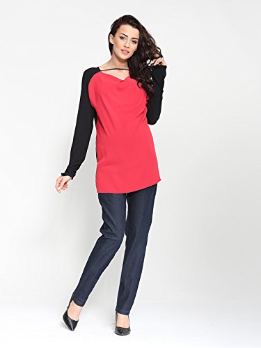 9fashion マタニティトップ GELI ロングスリーブフロントシフォンマタニティトップ サイズS レッド×ブラック