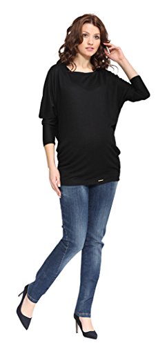 9fashion マタニティトップ LORIEN バックレースドルマンスリーブマタニティトップ サイズXS ブラック