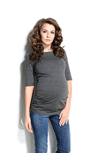9fashion マタニティトップ PEDRA ボートネック5分袖マタニティトップ サイズXS アンスラサイトメランジ