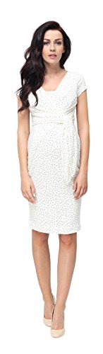 9fashion マタニティワンピース HOLLY NEW Dress II カシュクールフロントリボンナーシングマタニティワンピース サイズL クリームポルカドット 授乳対応