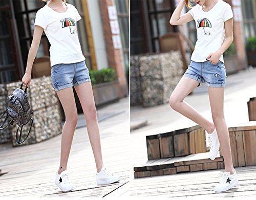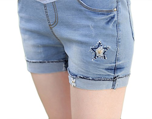 (ナインスコード) 9thCode ストレッチリブでお腹周りゆったり楽ちんオシャレ!種類豊富マタニティデニムショートパンツ 2XLまで スターワンポイント M
