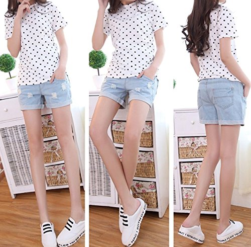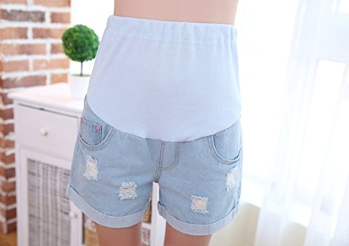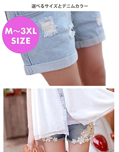 (ナインスコード) 9thCode ストレッチリブでお腹周りゆったり楽ちんオシャレ!種類豊富マタニティデニムショートパンツ 3XLまで ライトブルーダメージ加工 XXXL