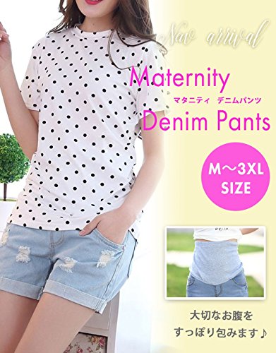 - 妊娠中の大切なお腹を守りながらオシャレができる、ゆったりリブ付きの楽ちんマタニティデニムショートパンツです。