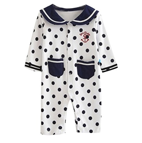 (ナインスコード) 9thCode ベビー服 長袖 ロンパース カバーオール 女の子 綿100% 白マリン 66(4-6か月)